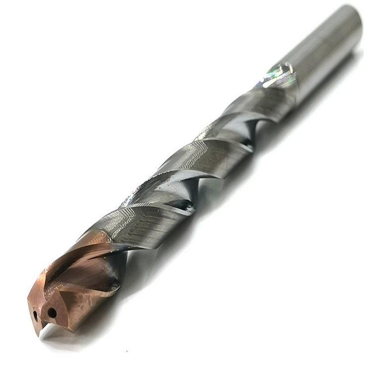 苏州锐者精密工具公司生产的中心出水钻头又称合金内冷钻头,是一种孔加工工具,其特点从柄部到切削刃有2个按麻花钻导程旋转的螺旋孔,在切削加工中通过压缩空气、油或切削液穿过,起到冷却刀具的作用,可以冲走切屑,降低刀具的切削温度,增加刀具的使用寿命,加上内冷涂层钻头表面TIALN涂层,更增加钻头的耐用度和加工尺寸的稳定,因此该内冷钻头比普通硬质合金钻头更具有优良的切削加工性能,特别适合用于深孔加工以及难加工材料.,内冷孔钻,带内冷却钻,带内冷却孔的钻头是为了减少钻头高速加工时的高热带来的对钻头和产品外观的损伤,带双冷孔的钻头有效地解决这一问题,给您带来高速高效的钻削加工;欢迎来图纸或者来样定制内冷孔钻头,可涂层、定制锥柄、直柄等
