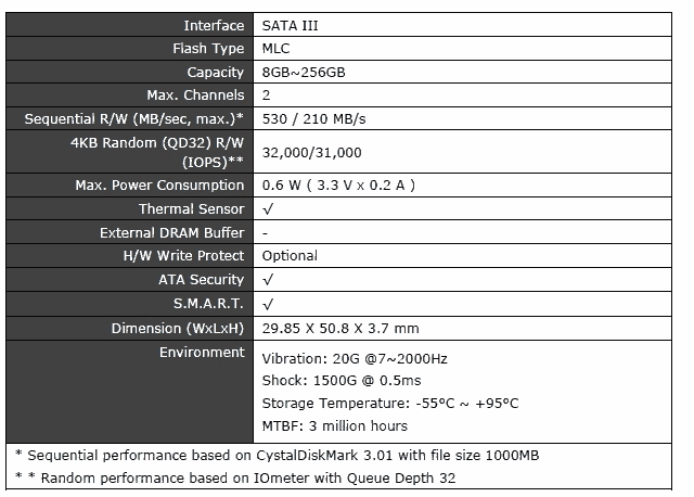 Innodisk mSATA 3ME4 is SATA III 6.0 Gb/s flash based disk, which adopts latest Marvell NAND controller with Innodisk’s exclusive L3 FW architecture. The upgraded L3 FW architecture, combining Innodik signature 4K mapping algorithm L2 FW architecture with powerful LDPC technology, makes 3ME4 series have outstanding high IOPS, better data integrity and extended lifespan through reducing the bad block number happening. Built-in thermal sensor, and iData Guard ensure data integrity and reliability of mSATA 3ME4 for industrial applications.