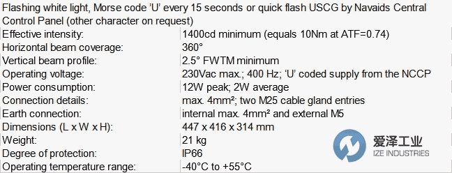 光强度符合 IALA 要求,即使灯笼的强度降低 25%(使用条件系数,根据 IALA E-200 (2008) Part 2, 5.1)