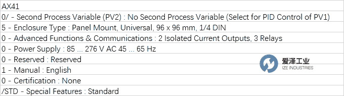 ABB 单(双)输入分析仪AX41.0/.5.0.0.0.1.0./STD规格描述