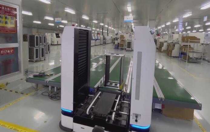 基于自然无轨导航技术,SMT板箱自动上下料机器人依靠视觉和智能算法,可实现机器人在工厂室内环境下的自主行驶与避障,而无需借助其他辅助标记。该机器人可与SMT上下板机码头自动对接,完成双向物料传送,实现SMT产线与物料缓存区之间的物料传送。