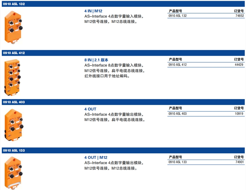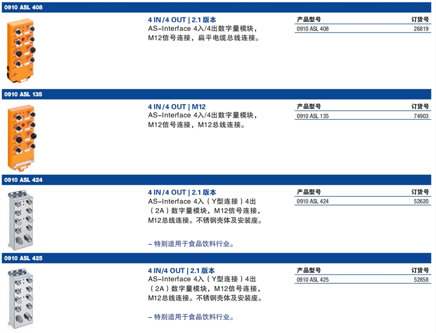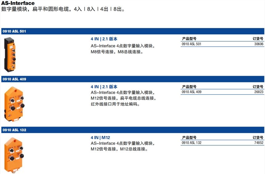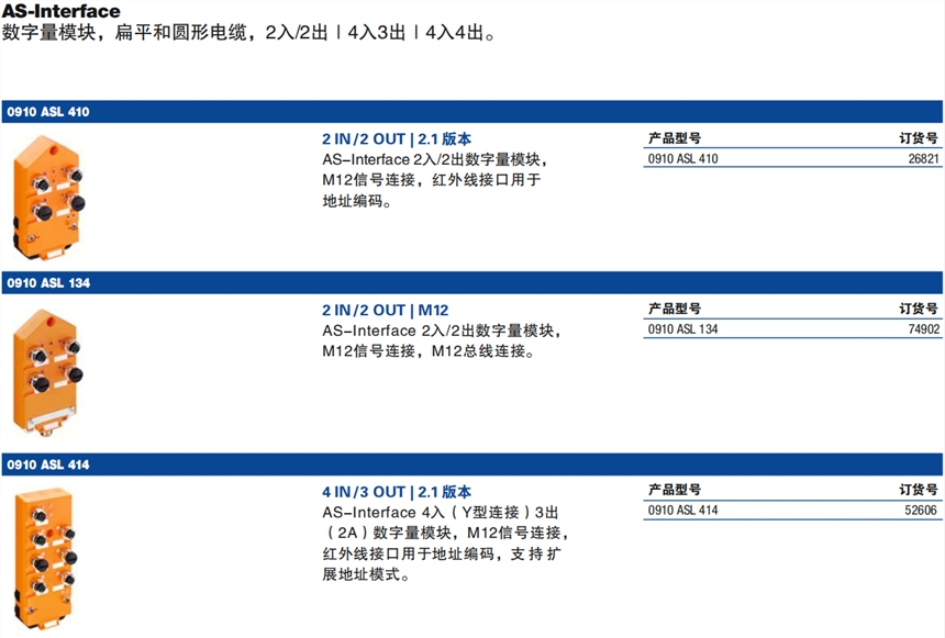 独立工作型I/O模块系列支持现场总线协议及以太网协议,包括ASI、CANOpen、DeviceNet、Profibus,以及Profinet、Ethernet/IP、EtherCAT。外壳设计提供塑料和金属两种,防护等级更高可达到IP67+IP69K。