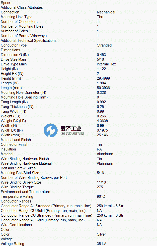 If you have any question for ILSCO products, please feel free to dial 0086-21-3100 6702/ send request email to sales@ize-industries.com / browse our website:www.ize-industries.com.
