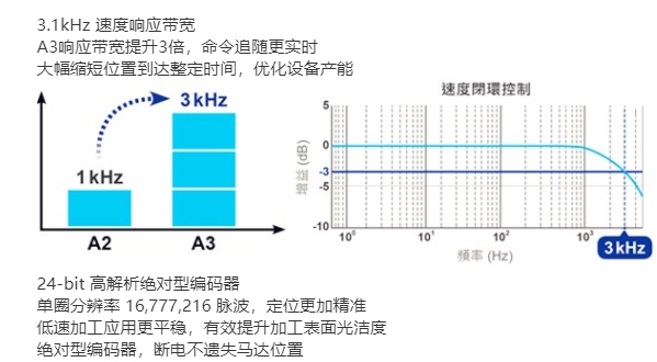 随着自动化市场的快速发展,运动控制市场对于伺服产品的性能、速度、精度、带宽及功能性要求越来越高,台达推出高阶伺服系统ASDA-A3系列,满足产业机械设备高性能、多功能、节能与小型化的需求。