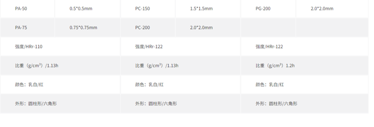 体积密度(g/cm3) | 0.93-0.96 | ||