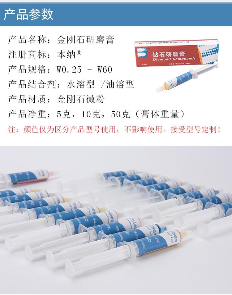 金刚石研磨膏采用高强度金刚石颗粒为原料,粒度均匀,保证磨削均衡,自锐性能优异,清水即可清洗。金刚石含量更高达10%,磨削速度更快,提高您的工作效率,使加工的产品光洁度更好。