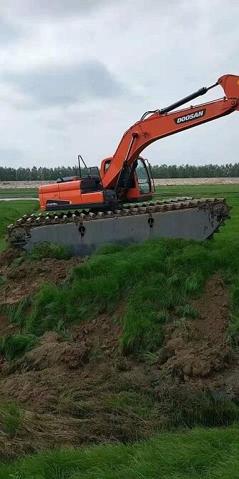 江南工程机械租赁公司 改装的水陆挖掘机是一种适用于陆地、沼泽软地面及浅水作业的多用途挖掘机,是专门为工程船舶及常规工程机械无法和施工的沼泽地,海涂,淤塞沟渠等区域进行开挖,清淤而研制的,是一种可自行出入泥沼,水域及河坡堤岸的超低比压挖掘机,