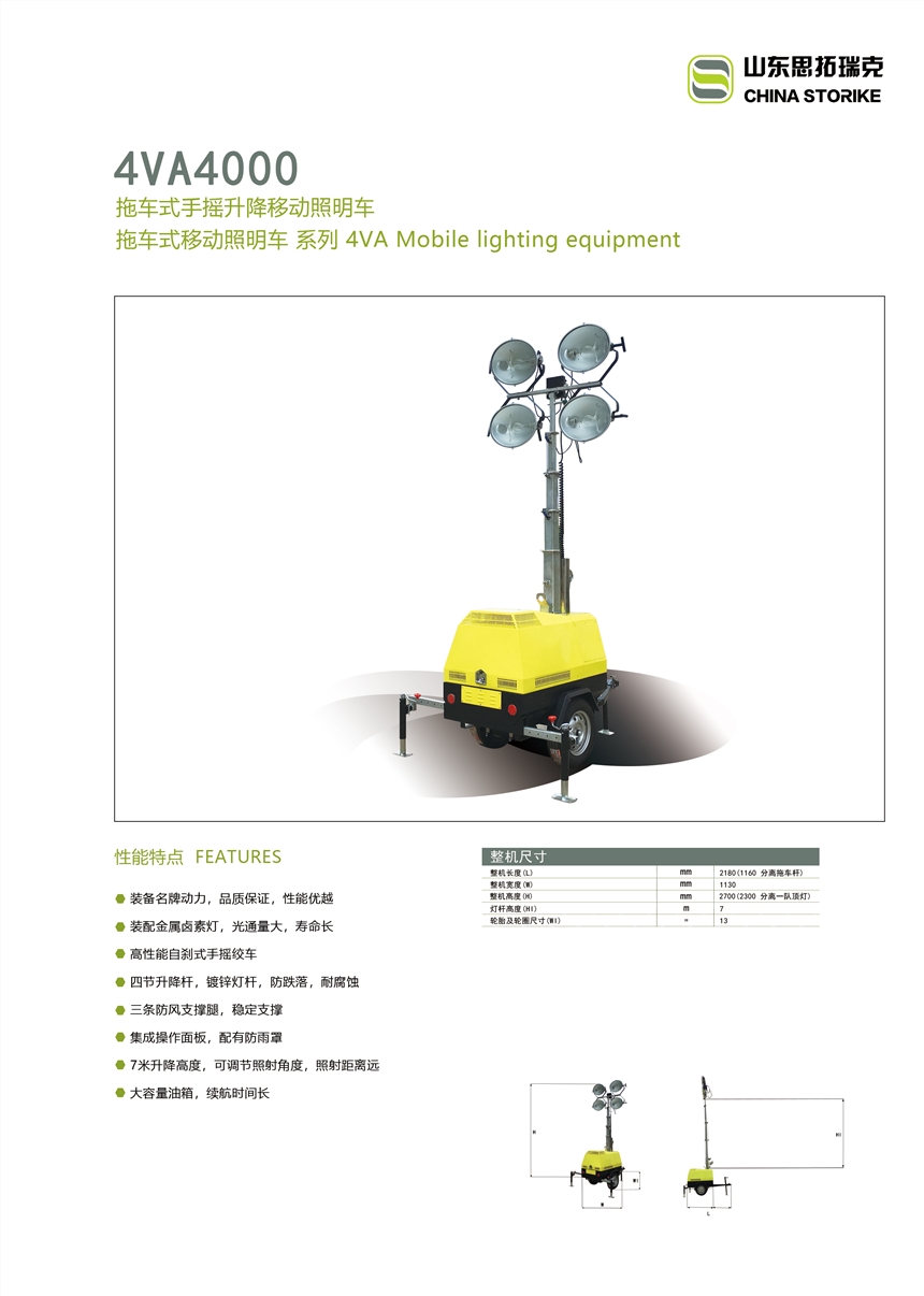适用于铁路、电业、油田、冶金、石化企业等各种大型施工作业、事故抢修、抢险救灾等现场作移动照明。