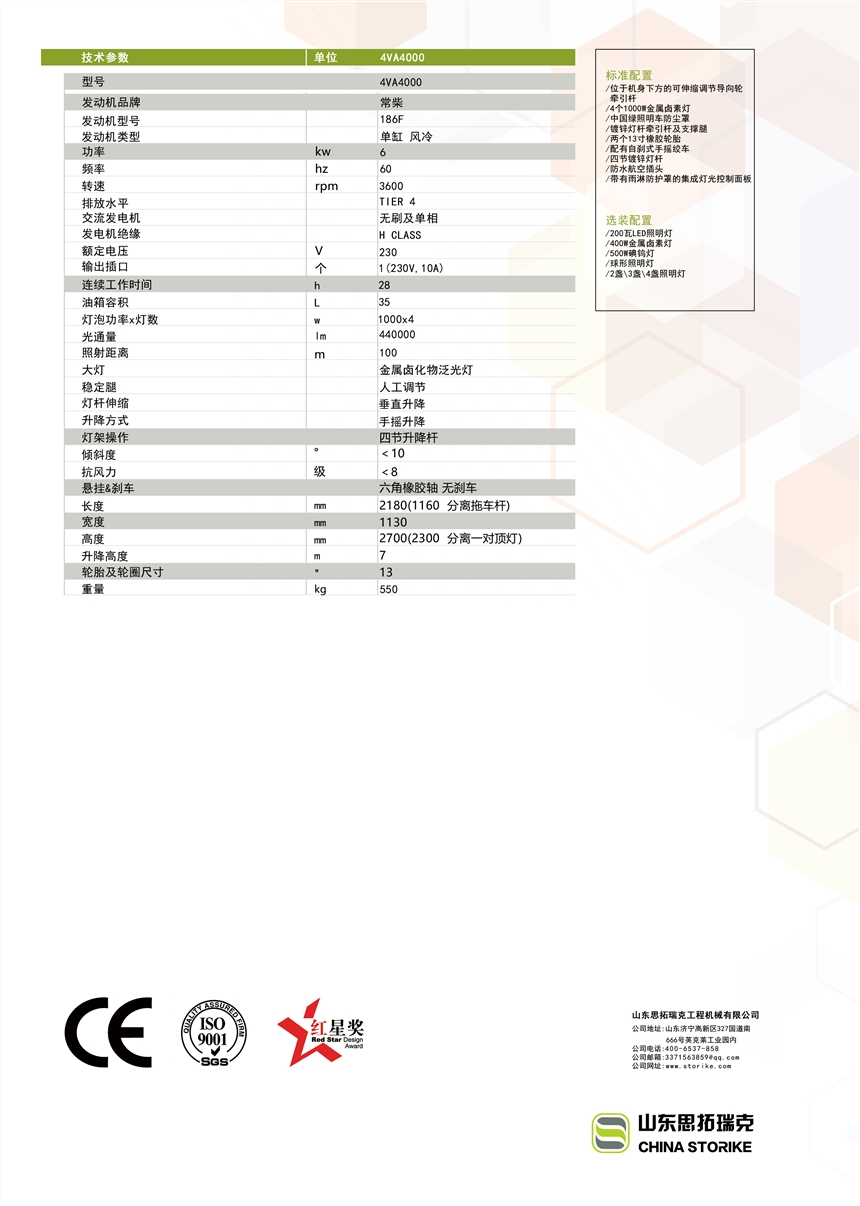3. 四节升降杆,防跌落,灯杆最高可升至7米,其照射角度可以轻易地在最低位置手动调整;
