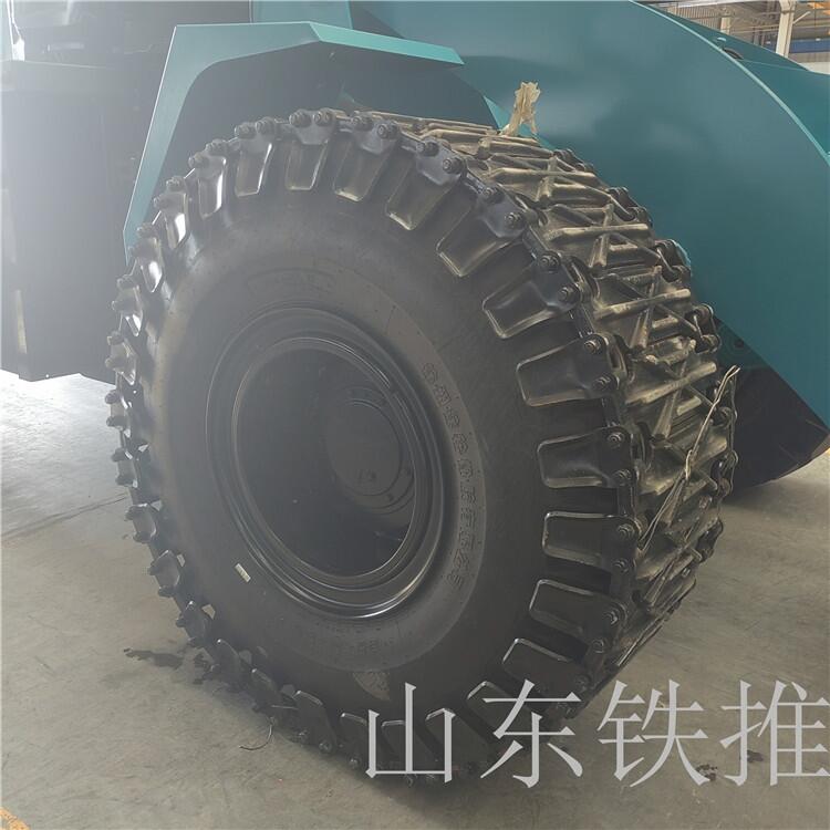 防滑保护履带是安装在装载机、铲运机等轮式工程机械上,目的是为延长轮胎使用寿命,增强轮胎防滑、防扎、防硌效果的新型产品,对轮胎形成有力的保护。填补了工程机械配件的空白,广泛用于采石场,矿山,工程等各种环境,轮胎防滑保护履带在同等工况下延长三倍使用寿命。省时省力,在安装上履带仅需两人一个小时就可装好两条。故障率低并且装上后即不用管也无需维护。是提高设备工作效率,节约使用成本最简单、有效、直接的选择。同等工作量的前提下降低油耗,对节约工时的效果非常明显。