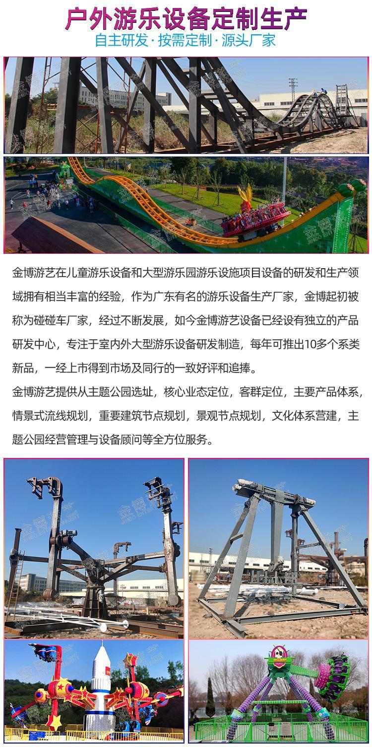 年度研发十余款新产品A证资质特种设备生产许可证企业大型游乐设备厂家,大型户外游乐园设施设备供应:旋转飞梭,跳楼机(移动式),高空赏月,吉祥三宝,摩天轮,大型过山车,激流勇进,23座大摆锤,大鹏展翅,星际穿越,埃及探险,神州飞碟,豪华摇头飞椅,太空漫步,激情跳跃(移动式)等,金博游艺设备价格公道,品质过硬,提供主题乐园一站式承建服务。