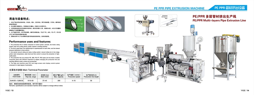 该机组是以SJ-65/30为挤出机,配备相应的模具、冷却装置、牵引装置,用于连续高效挤出生产管材。具有质量稳定,操作方便等特点。
