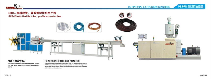 改组生产线可以生产各类PVC PP PE等塑料软管及密封条。由单螺杆主机,水槽,牵引机,收卷机及改换不同模具生产各种软胶管型材及管材产品。