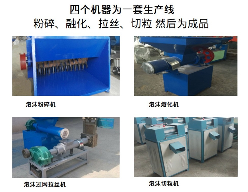 泡沫造粒机又叫泡沫颗粒机,设备设计合理,自动化程度高,工艺先进,节能无污染,可在常温下将其直接生产颗粒,光亮均匀,并不破坏原有的分子机构,所产颗粒应用广泛,市场供不应求。