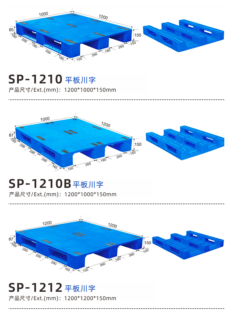 渝北宠物饲料厂仓库垫板|叉车托盘|塑胶栈板|塑料托盘直售——如果您正好在寻找一款高承载、抗压好的塑料托盘,一定不要错过赛普这款川字平板托盘。载重高达地面存放静载可达4吨,叉车搬运可达1.5吨,搬运上货架须加钢管,加上后可达1吨。我们这款川字平板托盘,是货物周转储存的好帮手。