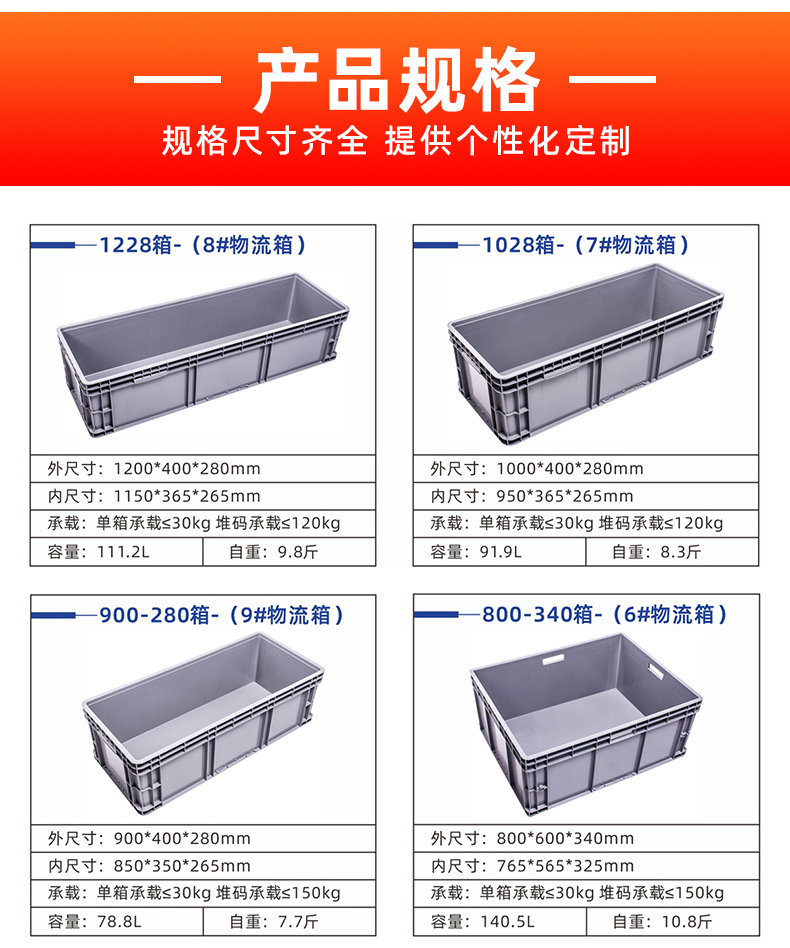 物流箱适用于服装、五金、机械、电子、化工、仪表、养殖业、食品、水产、物流仓储等行业,可用于盛放食品,清洁方便,零件周转便捷、堆放整齐,便于管理。其合理的设计,优良的品质,适用于工厂物流中的运输、配送、储存、流通加工。可与多种物流容器和工位器配合,用于各类仓库、生产现场等多种场合,周转箱帮助完成物流容器的通用化、一体化管理,是生产及流通企业进行现代化物流管理的必备品。