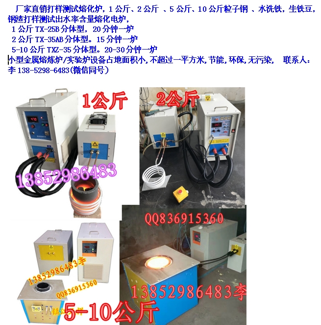 小型1公斤2公斤化验熔化炉,粒子钢 、水洗铁,生铁豆,球铁豆,钢渣打样测试出水率含量熔化电炉, 高频熔炼炉厂家直销,制造商厂家联系人:李138-5298-6483(微信同号