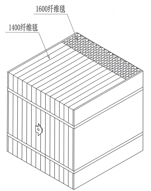 内层采用1400组块,外层采用日本三菱1600纤维毯,契口方式结合,1600纤维厚度可达到100mm以上。不掉渣,不影响烧结产品;