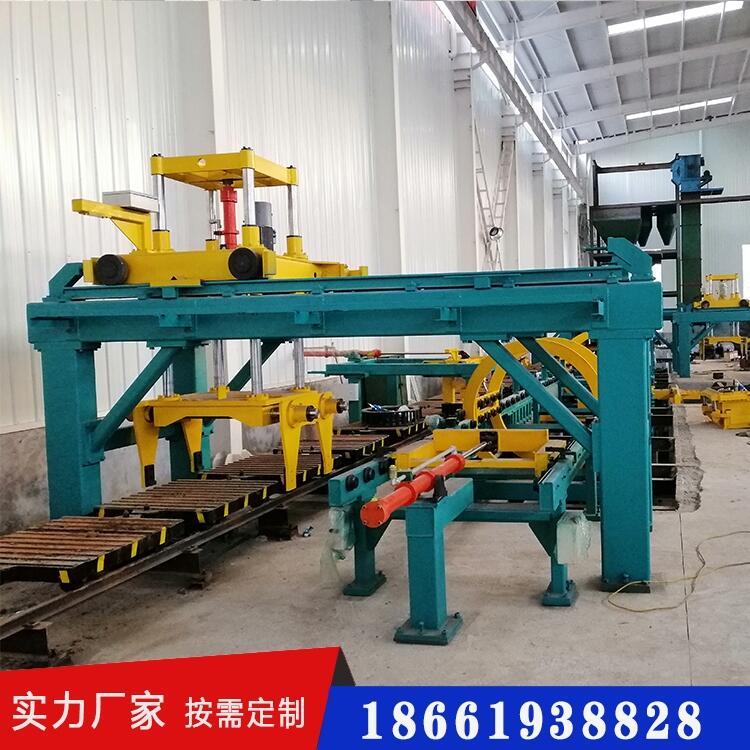 ? ?静压造型线为开放式布置,由静压造型机和合箱机、铣浇冒口机、分箱机、捅箱机、浇注机、转运小车、清扫机及型砂输送机等;除此,还有为完成砂箱而设置的辅机。这些辅机的结构和工作原理大多比较简单,一般由机械机构(常以机械手的形式出现)、驱动装置(气动、液压或机械传动)以及定位和缓冲装置等组成。