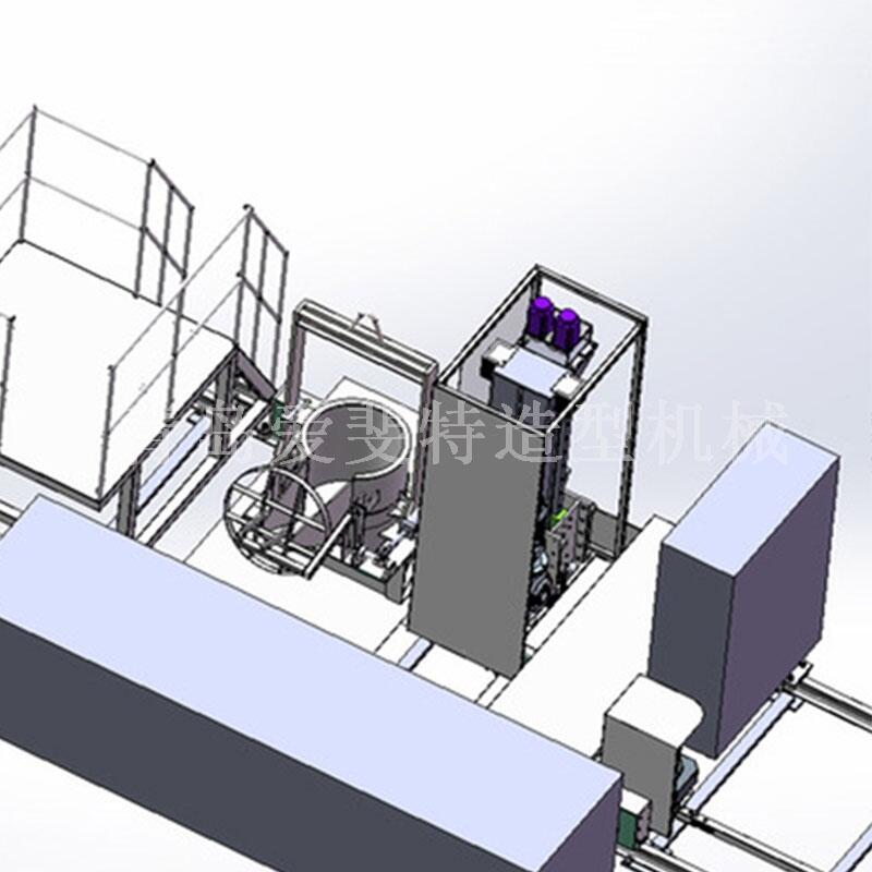 自动浇注机用于有箱、无箱水平造型线进行自动浇注或半自动浇注灰铁或球铁。浇包由伺服电机控制倾转浇注,浇注的速度根据铸件的流量可调。自动浇注机由扇形浇注包、伺服倾转机构、纵移车及轨道系统、横移机构、控制及操作系统、安全系统、电缆装置、随流孕育系统等组成。具有纵移、横移及倾转浇注三个运动自由度。