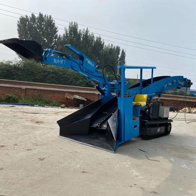 全液压履带式巷道扒装机,采用高品质变速箱及马达驱动底盘,扒装臂采用多路阀式控制,因此铲装.扒装有力,操作灵活方便.动力可使用电动机或柴油机,也可做成双动力形式.后部卸料部分高度可任意调整,并可折叠,进出巷道更加方便。输送方式分皮带输送机及刮板式输送。大臂分伸缩臂及挖掘臂两种。广泛适用于铅锌矿、铁矿及水电施工隧道中.因其效率高,便于维修而被广泛采用.