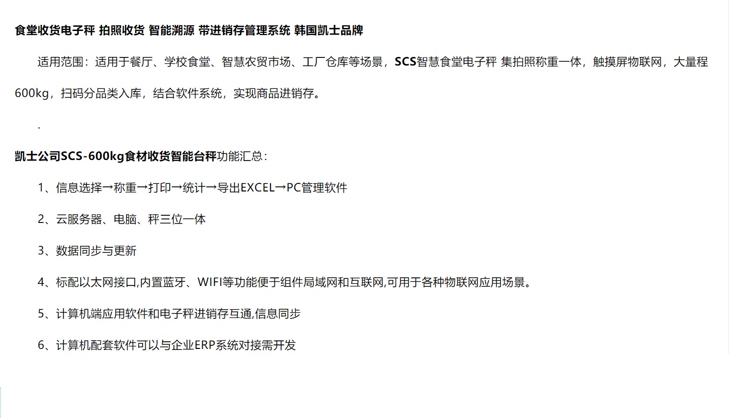 用途范围 | 食堂食材验收称重智能溯源秤 | ||