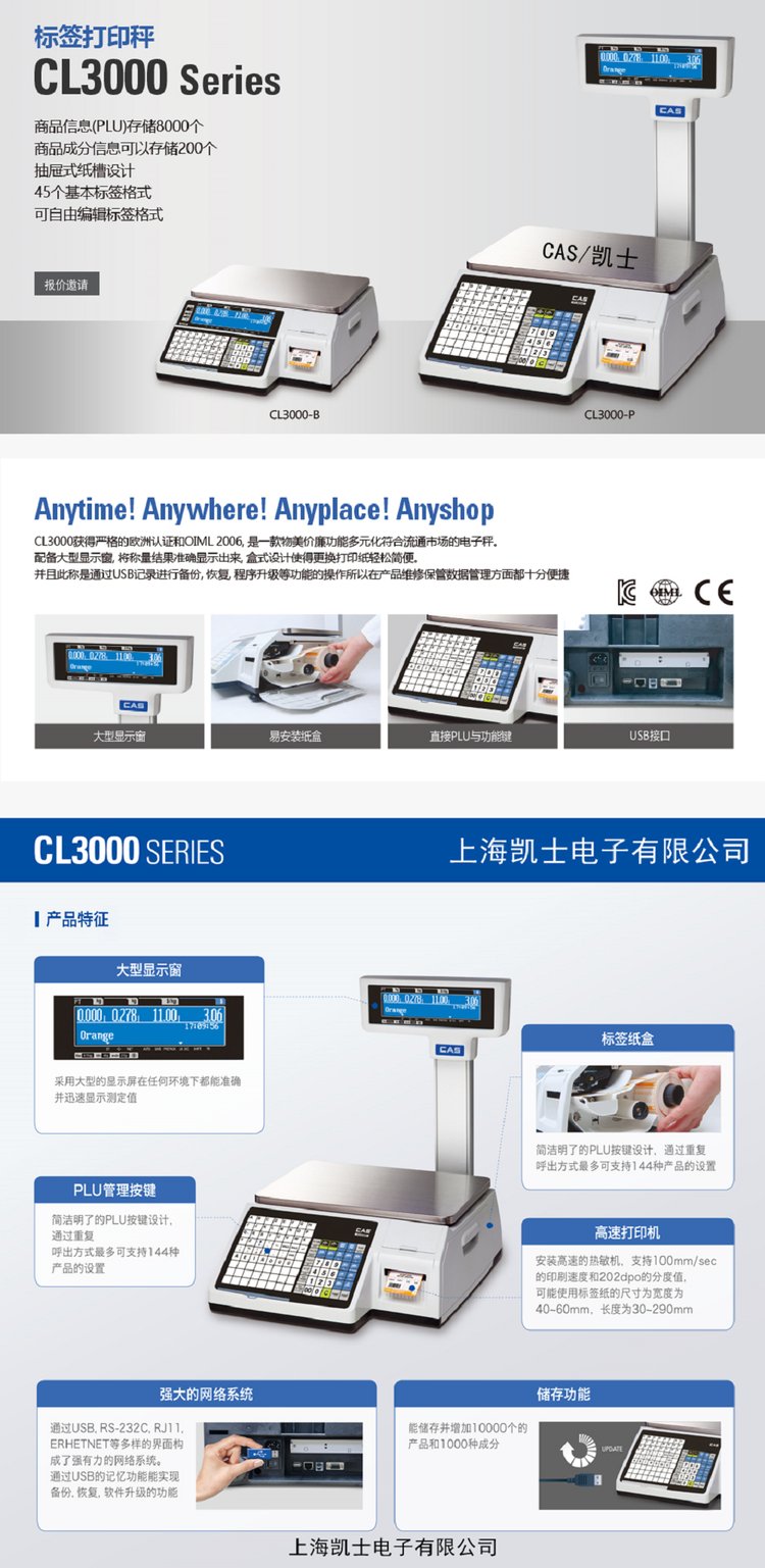 CAS凯士CL3000 Series 凯士条码秤 不干胶标签秤 上海CAS电子秤 条码打印电子秤