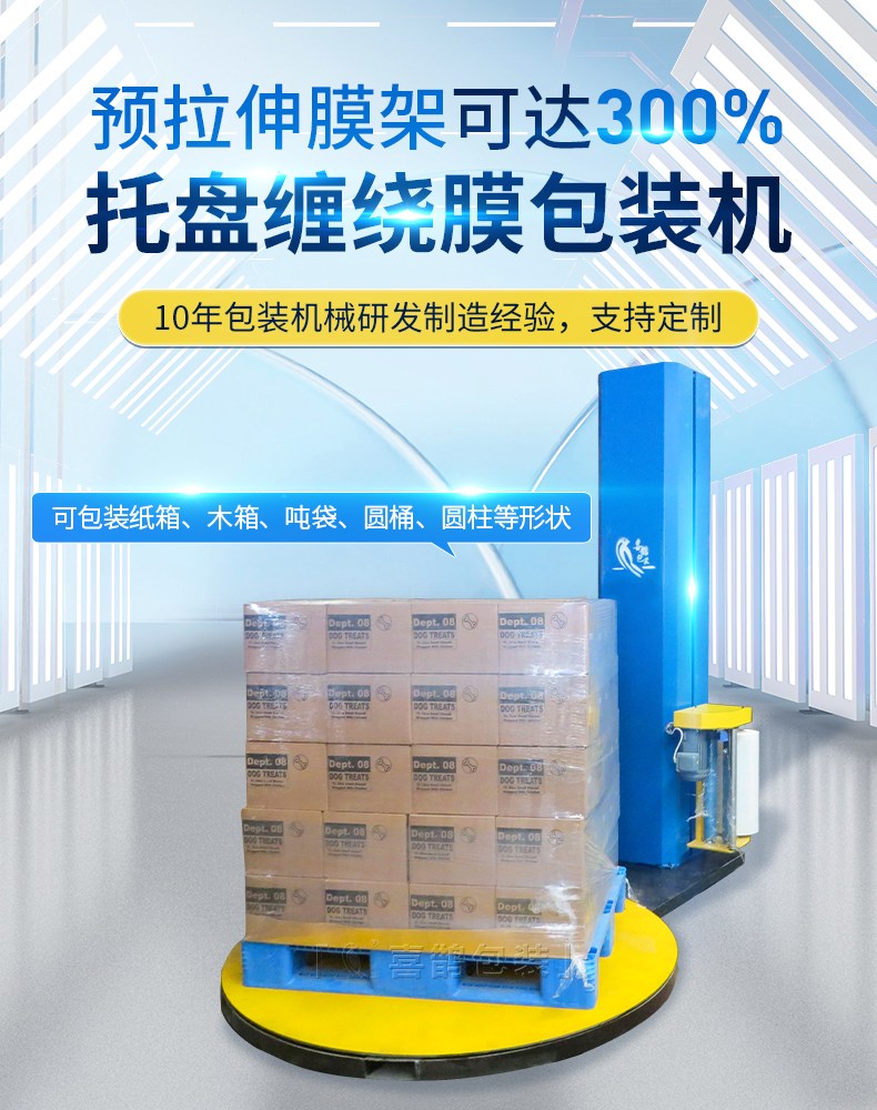 塑料桶托盘式缠绕包装机适用于大宗货物集装箱运输及散件托盘的包装。广泛用于玻璃制品、五金工具、电子电器、造纸、陶瓷、化工、食品、饮料、建材等行业。能够提高物流效率,减少运输过程中的损耗,具有防尘、防潮、降低包装成本等优点。是提升产品包装档次的理想选择。
