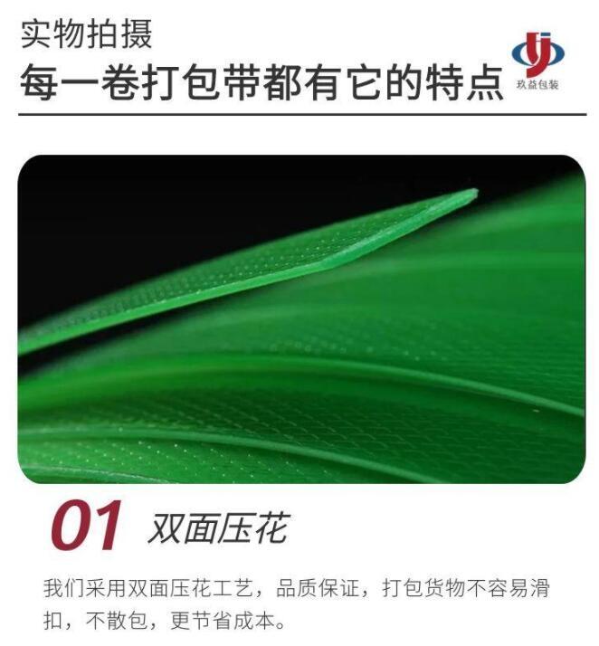 柔韧性:PET带没有钢带的锋利边缘,不会对被包装物体造成损伤。在打包和开包时不会对操作人员造成伤害,避免一切不安全因素。