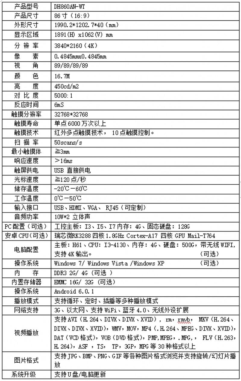 5.人性化设计,维护简单。采用前置多功能按钮与电脑USB接口,便于用户轻松拷贝文件;可插拨式OPS电脑,低功耗、散热好、性能稳定,方便维护,配置可根据用户要求进行定制;