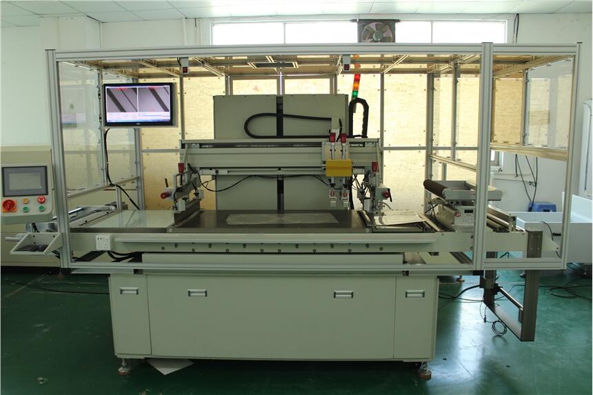 1.横滑座采用整体铝剂型加工,运行轻盈无抖动。 2. 网版夹框采用气动自动夹紧设计,操作方便。 3. 印刷采用松下伺服马达,搭配线性导轨导向,快速平稳、定位精准。 4. 人机介面控制+按钮开关,可设置多种功能及参数,操作便捷。 5.安全压板、光电开关、急停按钮,周密安全防护。 6.自动定位印刷,可按材料的大小自动调整。 7.印刷采用清洁辊轮除尘。 8.卷材跑料方向:客户无特殊要求跑料方向为从右向左(也可按客户要求定做)。