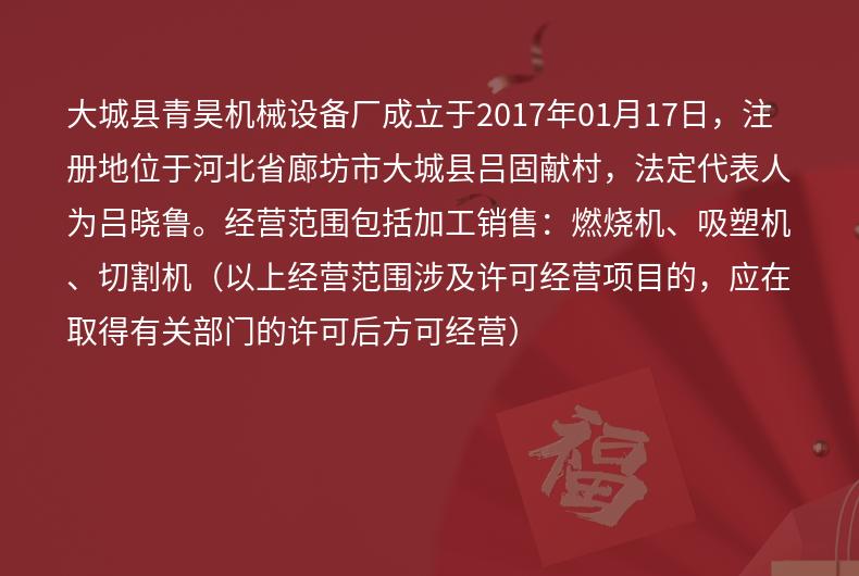 商铺名称:大城县青昊机械设备厂