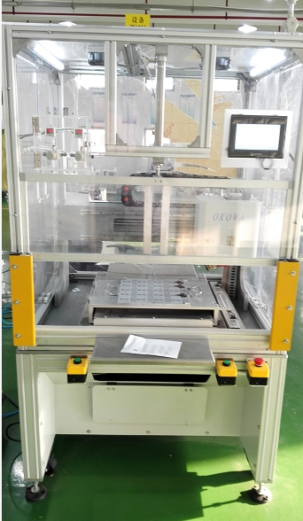 2.前工站贴片机预装螺丝在PCB板螺丝孔位,两个产品从皮带线自动流入1号2号热压工站后,阻挡机构分别将产品定位在预设原点,顶升机构+仿形治具自动顶起定位产品;