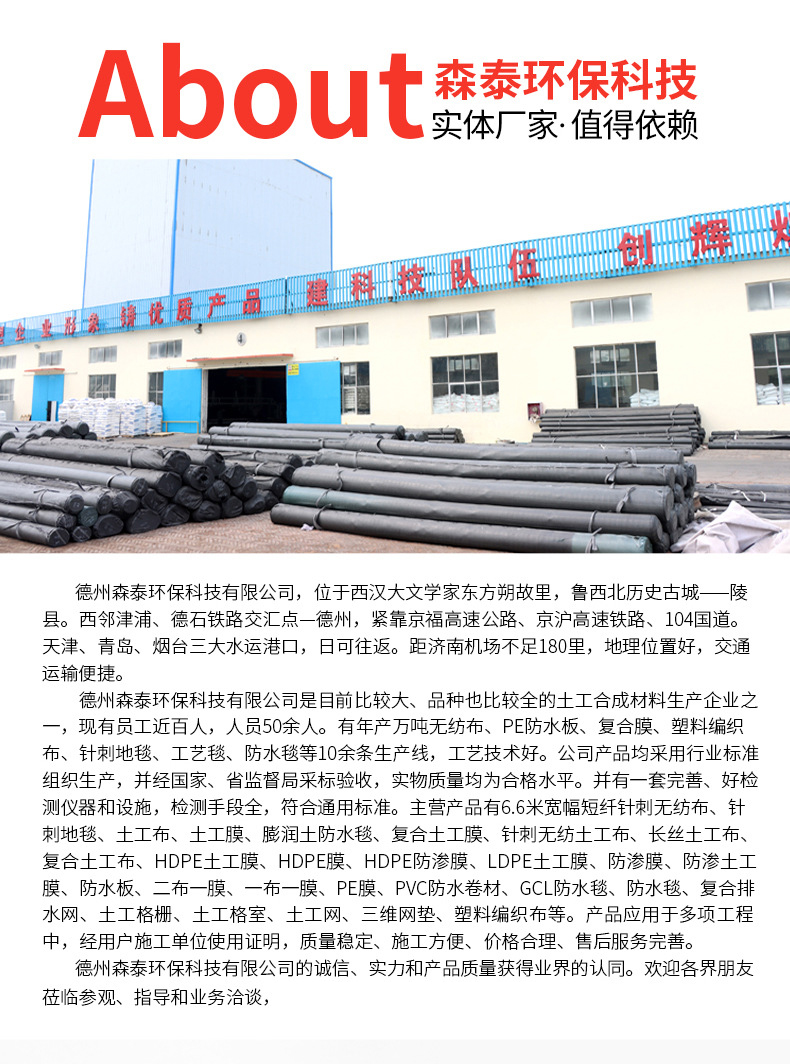 功能 | 柔韧性好 隔离排水 防渗效果好 耐撕扯 | ||