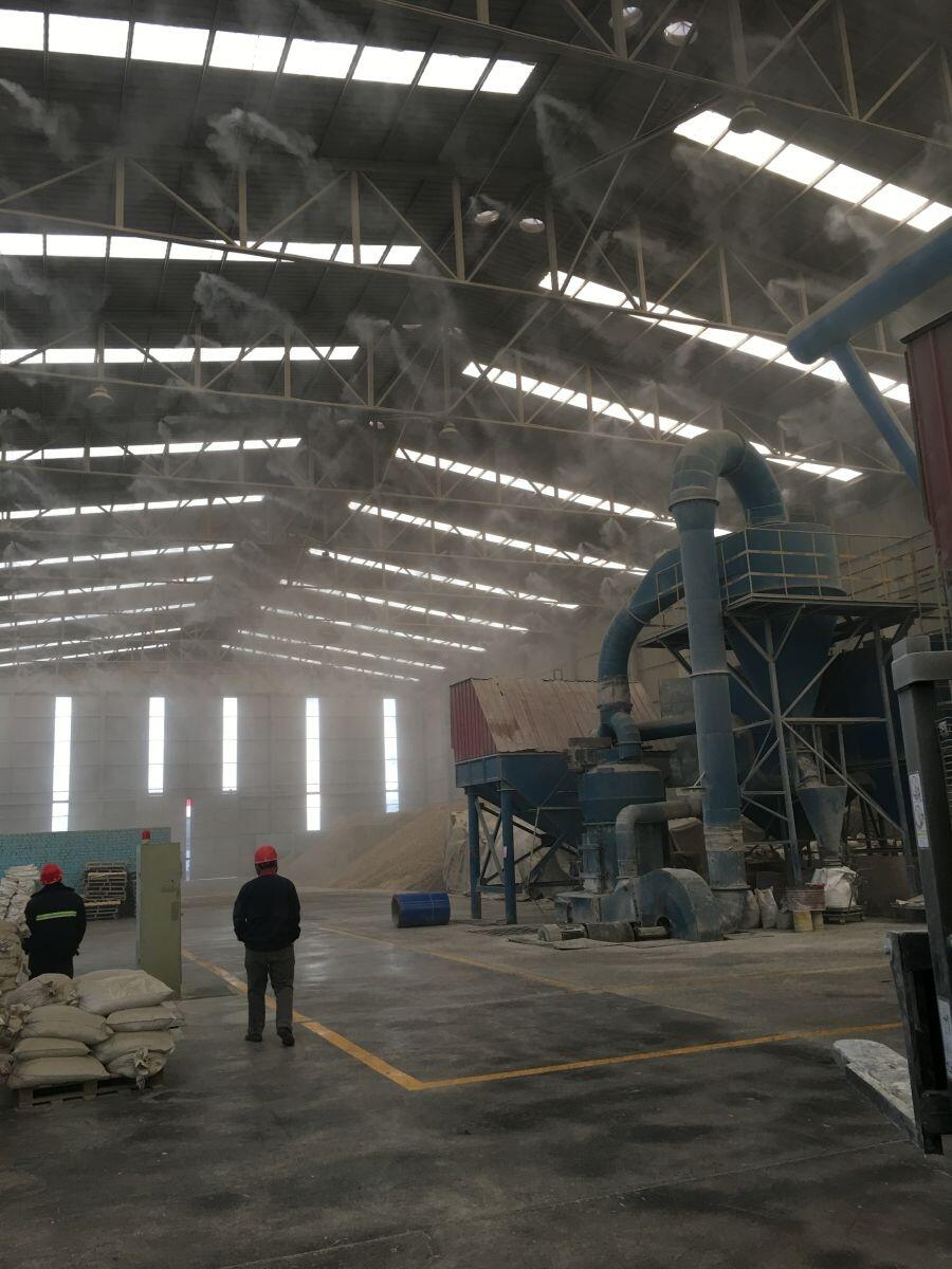 1、除尘完全:经过特制喷头喷洒出来的水雾雾粒直径仅为5~15μm,依据水雾黏附性的特色,当一颗颗雾粒碰到空气中漂浮的尘土时,就会依附在尘土上逐步融为一体,当重量大于漂浮力时就会落在地面上,然后到达除尘的作用,因为雾粒的直径小,所以以除尘作用会愈加的显着。