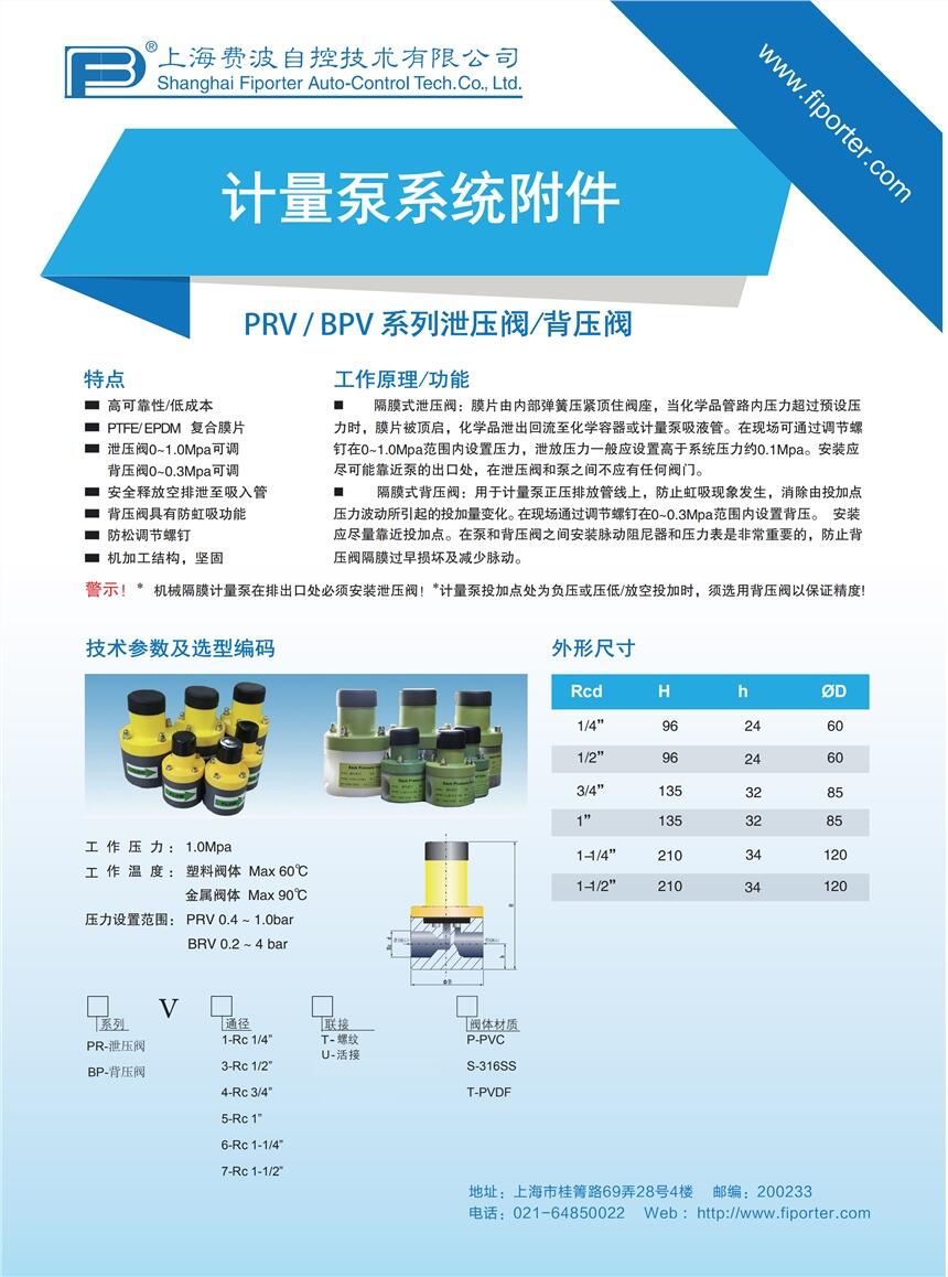 厂家直销PRV系列泄压阀安全阀 计量泵附件PVC PVDF 316SS
