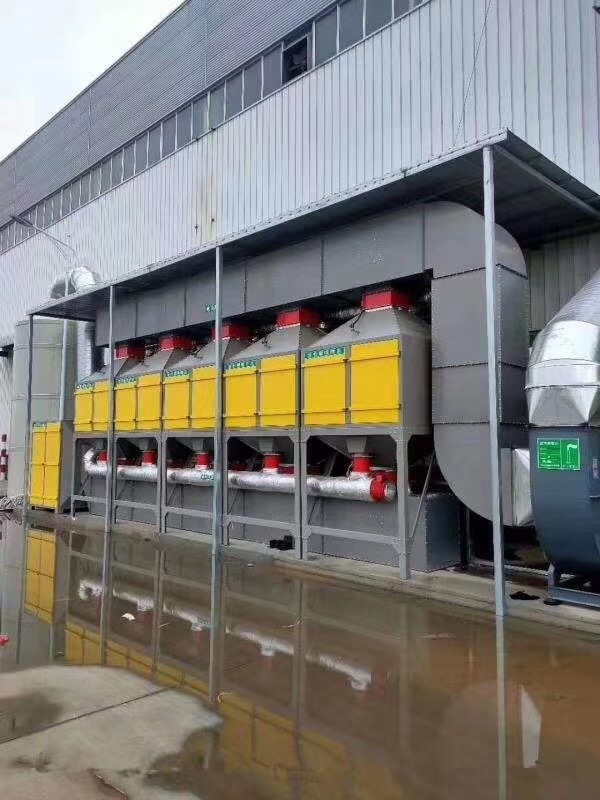 催化净化装置内设加热室,启动加热装置,进入内部循环,当热气源达到有机物的沸点时,有机物从活性炭内跑出来,进入催化室进行催化分解成CO2和H2O,同时释放出能量。利用释放出的能量再进入吸附床脱附时,此时加热装置 停止工作,有机废气在催化燃烧室内维持自燃,尾气 ,循环进行,直至有机物 从活性炭内部分离,至催化室分解。活性炭 了 ,有机物 催化分解处理。