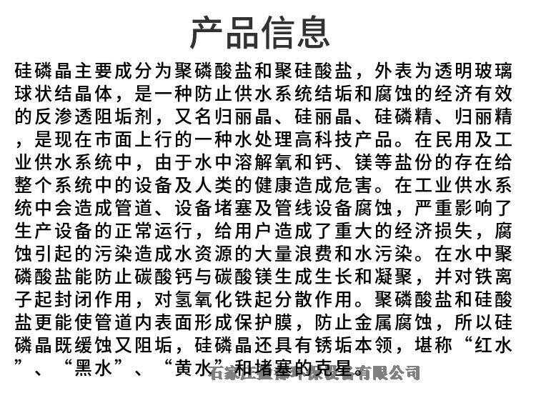 住宅小区阻垢归丽晶娄底 无色透明球状晶体硅磷晶 硅磷晶阻垢剂
