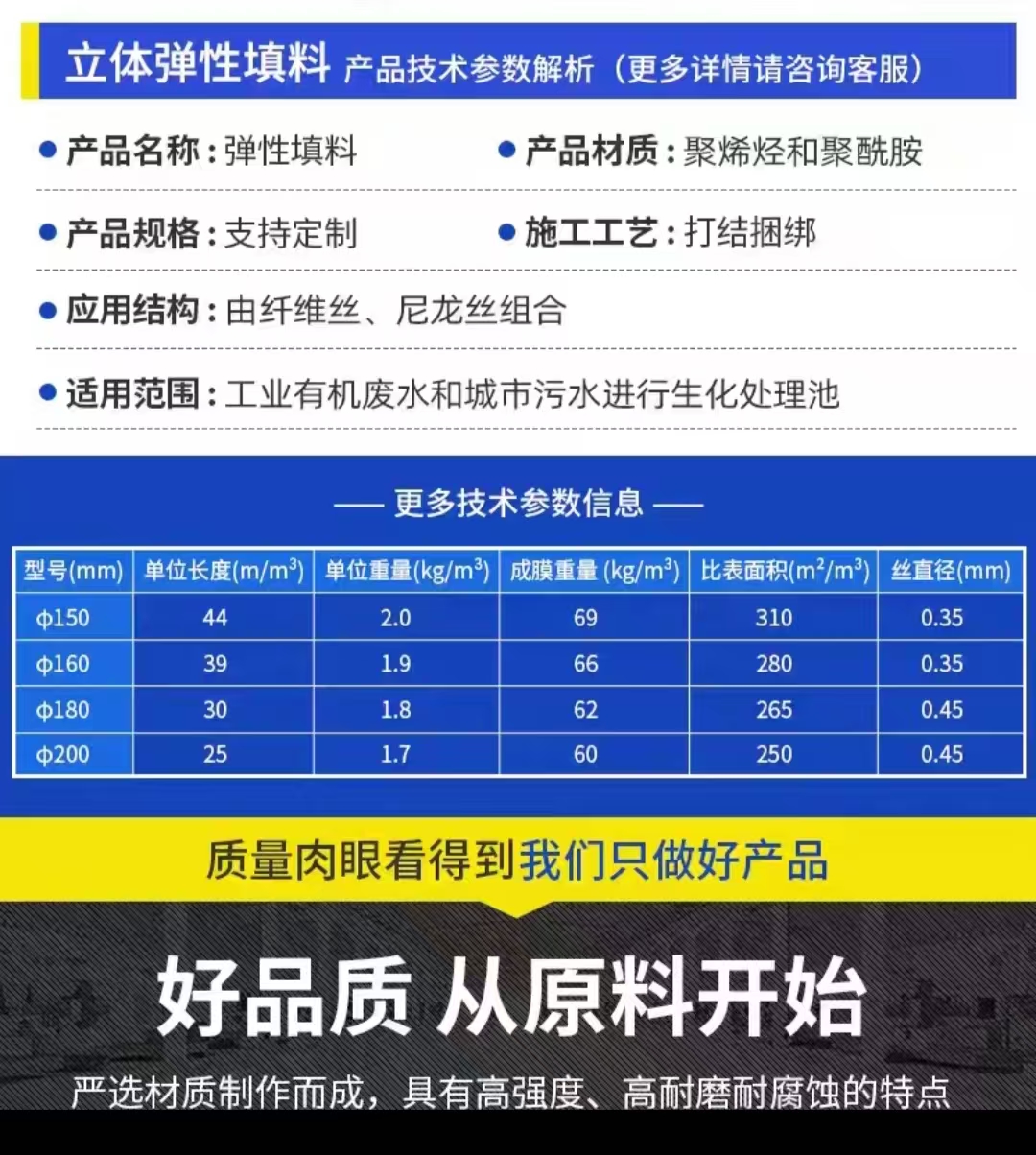 加密立体弹性填料生物毛刷挂膜好氧厌氧缺氧水解酸化池污水处理