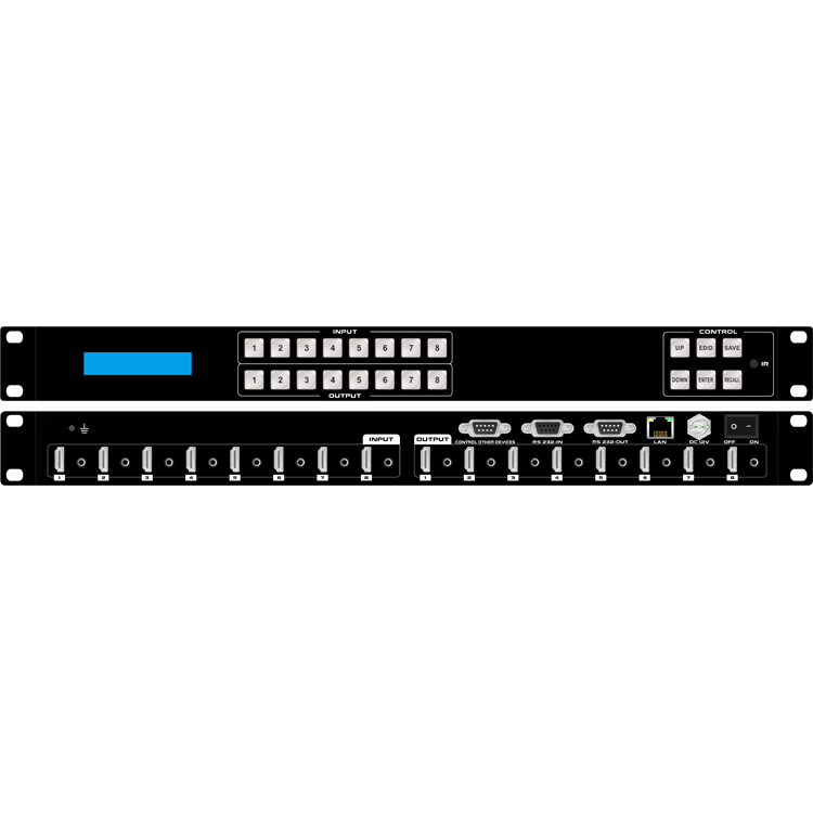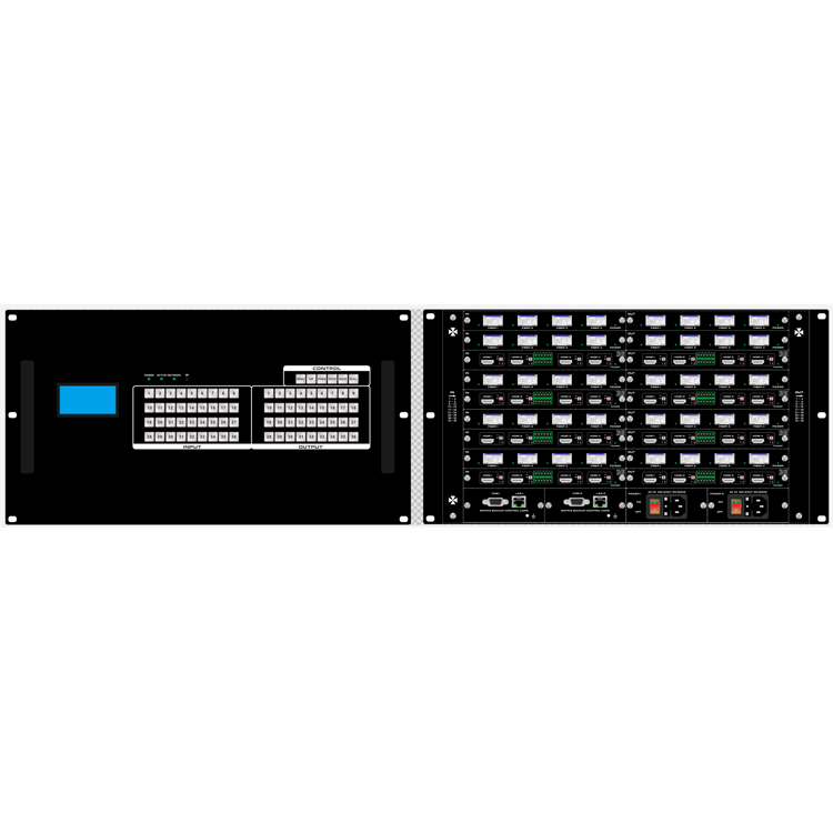 本矩阵单通道交换信号速率高达12.5Gbps,主板交换能力采用四核四链路处理技术,核心交换能力可达速率32Gbps。数字信号运用无压缩的传输方式,保证图像信号的高保真输出;独特的信号链路屏蔽设计技术保证信号的完整性;内部核心数字开关具有超强的抗干扰能力及长期连续工作的高稳定性;运用先进的高级算法,保证命令的高效实时性;