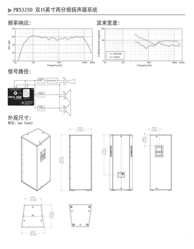 高音单元 | JBL 2412 1”喉口压缩单元,安装于Progressive TransitionTM波导 | ||