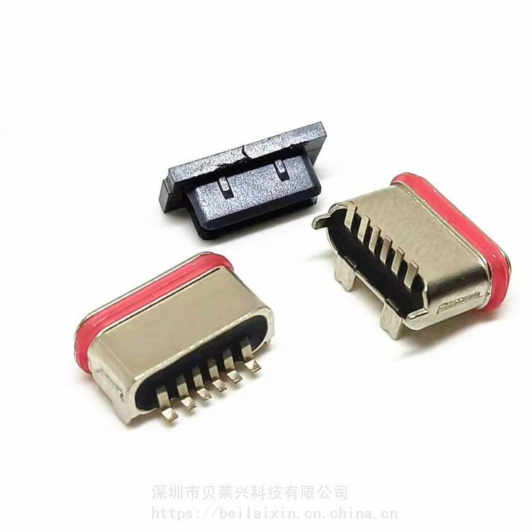 TYPE-C 6P防水母座 板上/立贴 两脚 四脚 粉末冶金外壳 胶芯外露 型号 | USB6P板上防水母头 | ||