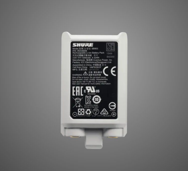 2节AA电池壳持续使用长达8小时,也可选配舒尔SB903可充电锂电池