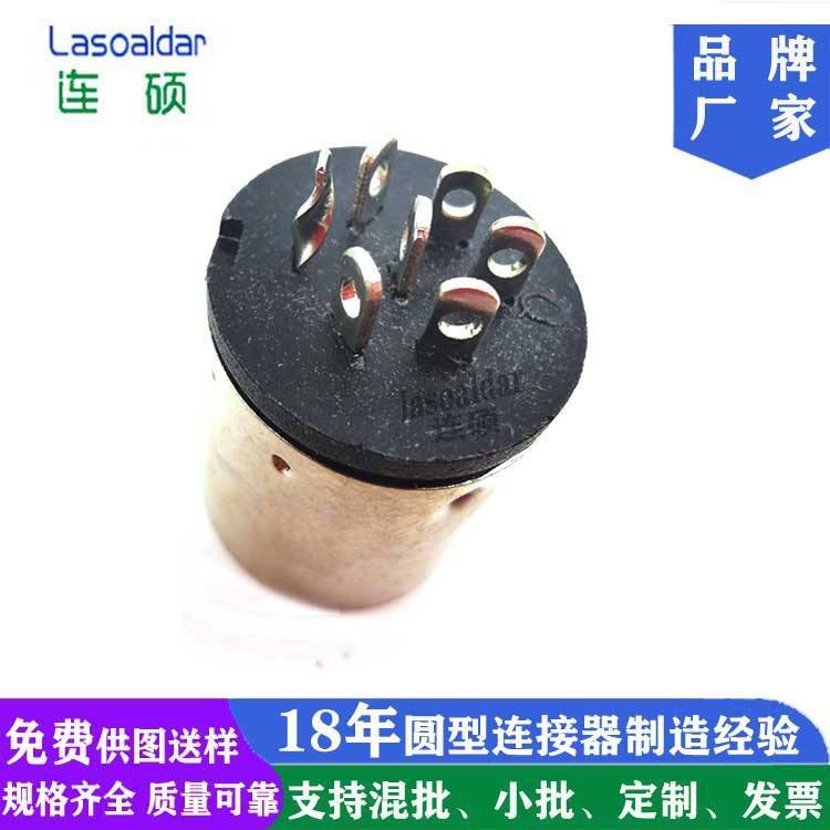 LASOALDAR连硕品牌厂家生产大DIN6PIN母插头实心车针六芯孔圆形母座DS端子焊线成型式连硕达