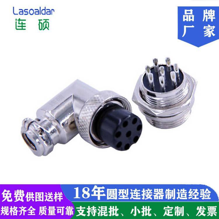 连硕达厂家八8P芯M16圆形连接器90°度弯角GX16航空插头弯头公母