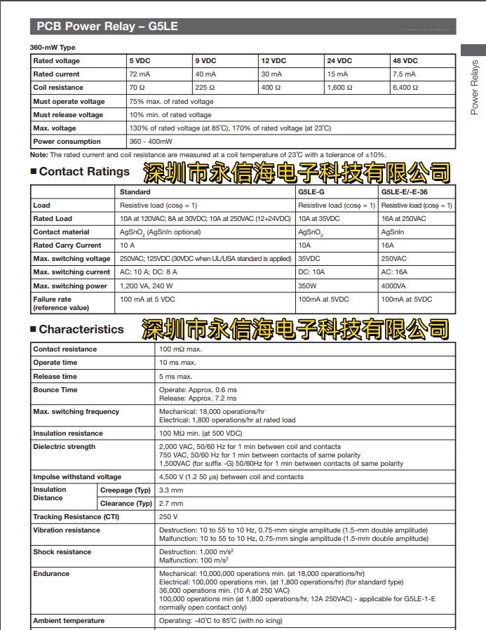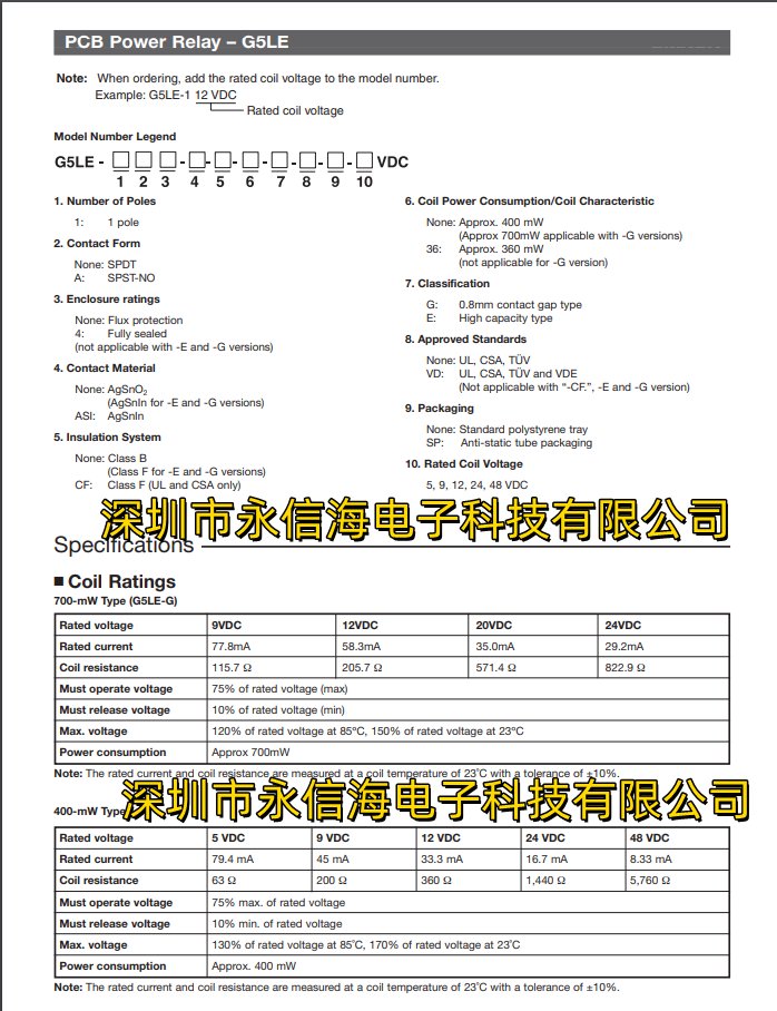 Omron G5LE 系列单极立方体型功率继电器,是多种应用的理想之选,如家用电器、办公设备、自动售货机等。线圈电压 24Vdc,额定触点电流 10 A,线圈电阻 1.44 kΩ。