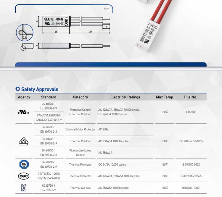 SEKI品牌工艺ST-12/ST-22/ST-30温度开关温控开关货源充足可定制 品牌 | SEKI | ||