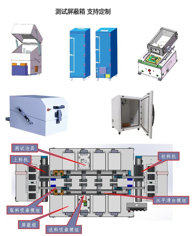 2、配合生产线稳定性测试,自动化机械手测试,大规模一致性测试;供应东莞无人机测试屏蔽箱2.0G屏蔽箱5.8G蓝牙测试仪屏蔽箱气动RF屏蔽箱厂家