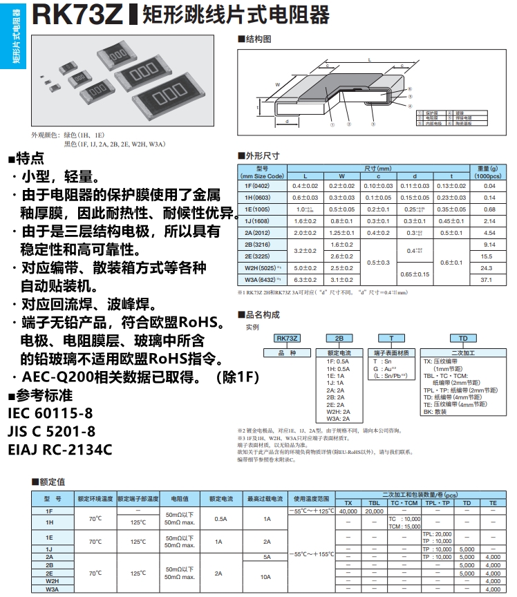 6、端子无铅产品,符合欧盟RoHS。电极、电阻膜层、