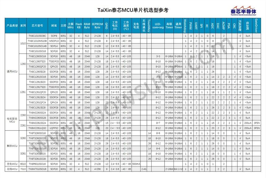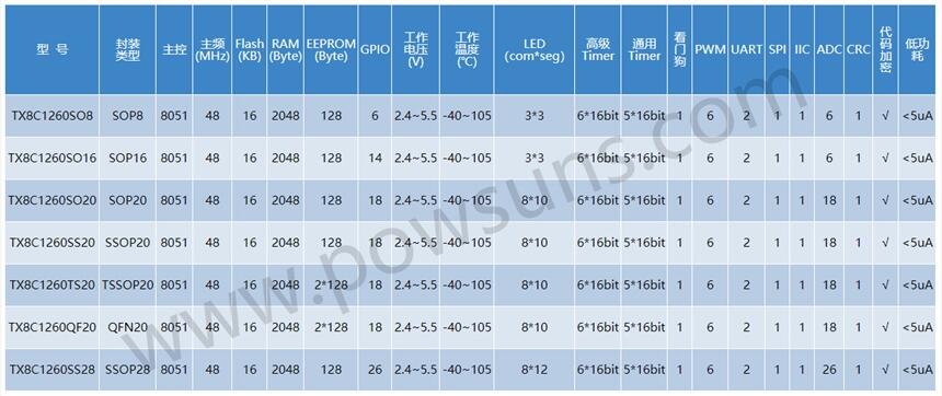 泰芯TX8C1260TS20 TSSOP20封装替代兼容STM8S003F3、新唐N76E003A、中微、芯圣、赛元、锦锐等品牌003通用8位8051可编程微控制MCU单片机